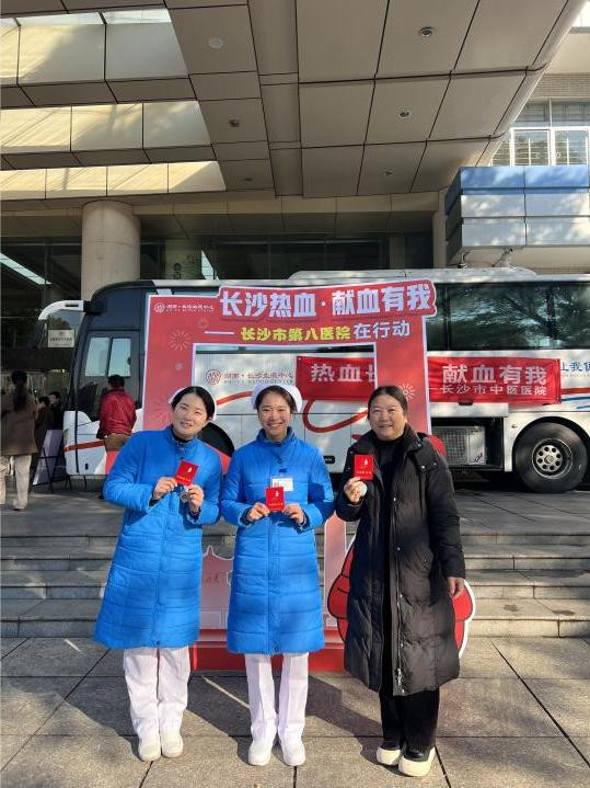 2024年12月,长沙卫生职业学院的99名师生,凭借扎实的医学素养与深厚的人文关怀,以医者仁心投身献血事业。他们深知血液对于生命的关键意义,99人默契配合,共同捐献38480毫升珍贵血液。每一滴热血,皆为守护健康的坚定承诺,似丝丝春雨,润泽每一位患者的心田,在救死扶伤的道路上,他们用行动诠释医学生的使命担当,为生命健康保驾护航。长沙市中心医院百余位医护人员以热血驱散患者寒冬岁末年初,为保障患者用血,长沙市中心医院100余位医护人员及职工家属走上献血车,参与无偿献血。面对呼啸的急救车,大量急救患者亟需输注血液延续生命,医护人员们的热血温暖了这个冬天。医院党委副书记、副院长刘鸣江带头参与献血,呼吁更多人用可以再生的血液,挽救不可重来的生命!长沙市第一医院医务人员用“双重身份”挽救生命2025年1月,长沙市第一医院副院长陈东携全院多名医务人员踊跃献血,用“双重身份”挽救生命,传递爱心!血液是无法替代的。作为医务工作者,都是想尽最大努力去挽救别人的生命。在我们积极救治的同时,能够用自己的血液更好的挽救患者生命,这是一件我们觉得很有意义的事情!长沙市第四医院医务人员用热血传递爱心新年伊始,献血车开进了长沙市第四医院(长沙市中西医结合医院)滨水新城院区,不少医护人员纷纷挽袖,用热血守护生命。医院医务部主任刘小华表示,临床需要输血救治的患者不会因为天气寒冷而减少,他们可能是恶性肿瘤或血液系统疾病患者,可能是孕产妇或新生儿,可能是交通事故、烧伤、骨折或外科手术患者,他们正等待着血液的救治,等待着您的挽袖相助。热血暖冬,爱满中医长沙市中医医院献血行动